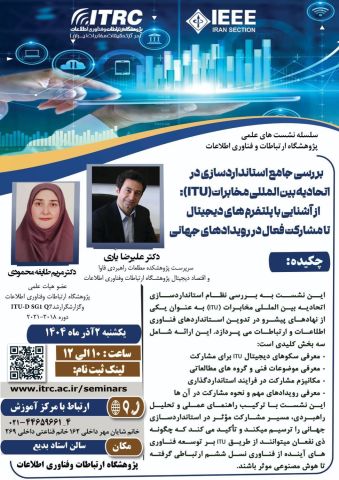 ( حضوری و مجازی) *زمان:* یکشنبه 2 آذر ماه ساعت  10 الی 12 *مکان:* پژوهشگاه ارتباطات و فناوری اطلاعات- طبقه M  - سالن دکتر بدیع