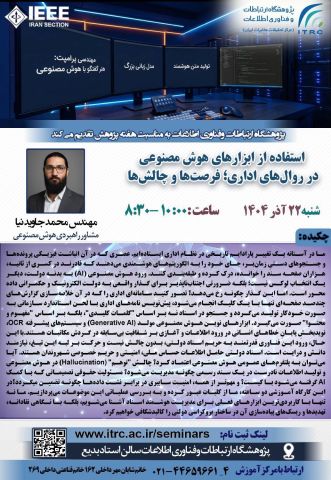 پژوهشكده فناوری اطلاعات وظیفه شناخت سیاستها و نیازمندیهای کشور و آینده پژوهشی در حوزه فناوری اطلاعات، اجرای پروژهها و مدیریت تحقیق و توسعه در سطوح بنیادی، راهبردی و كاربردی، ارائه خدمات فنی و مشاورهای در حوزه فناوریهای نوین را بر عهده دارد.