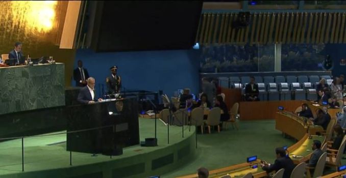یکبار دیگر در این مجمع اعلام میکنم که ایران هرگز به دنبال ساخت سلاح هستهای نبوده و نخواهد بود. ما به دنبال سلاح هستهای نیستیم و این یک باور اعتقادی و فتوای رهبری است در نتیجه به هیچوجه به دنبال آن سلاحهای کشتار جمعی نبودیم و نخواهیم بود. در جایی که برهم زننده آرامش در منطقه، اسرائیل هست ایران باید تحریم شود ما یک شعری داریم میگوید «گنه کرد در بلخ آهنگری به شوشتر زدند گردن مسگری. یکی جای دیگری دارد منطقه را به هم میزند و کسان دیگری را دارند تحریم میکنند.