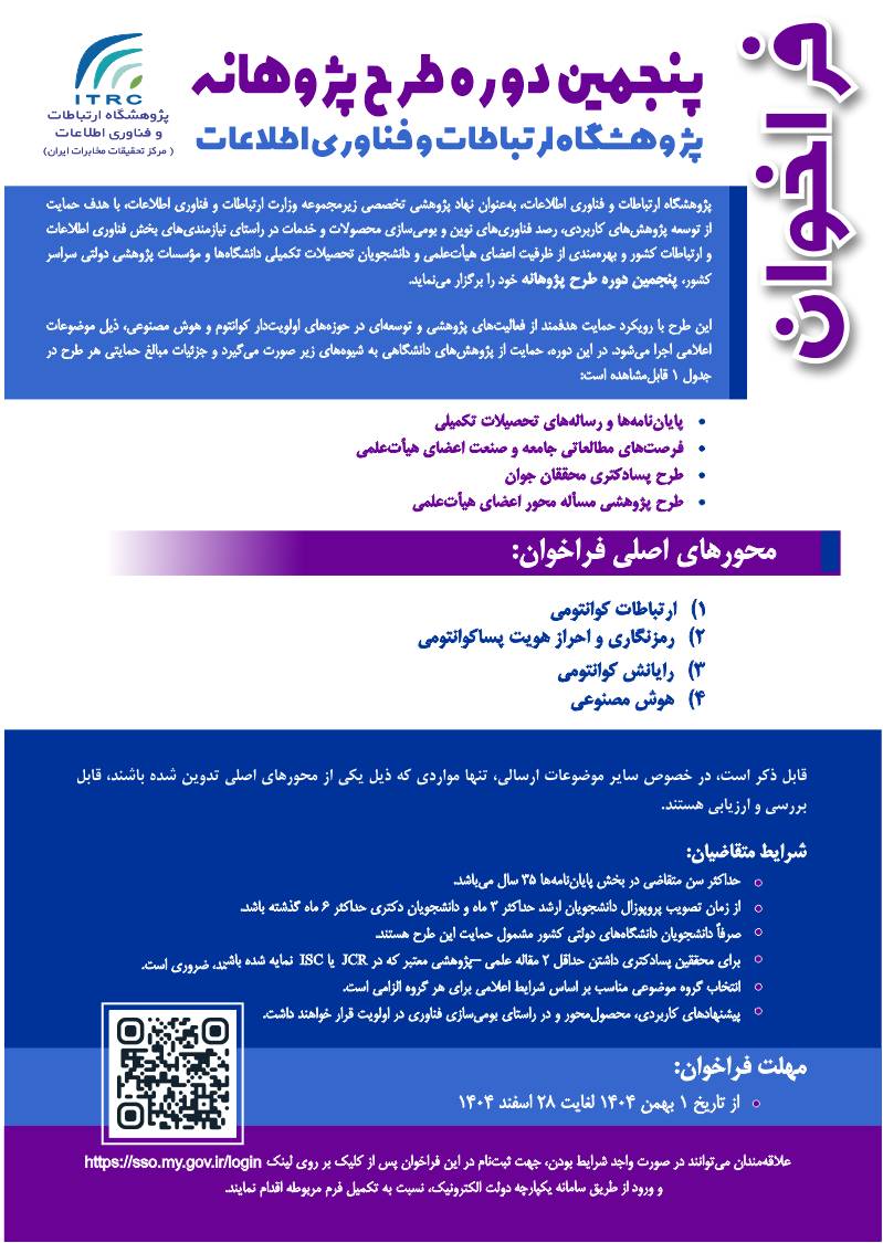 فراخوان پنجمین دوره طرح پژوهانه پژوهشگاه ارتباطات و فناوری اطلاعات