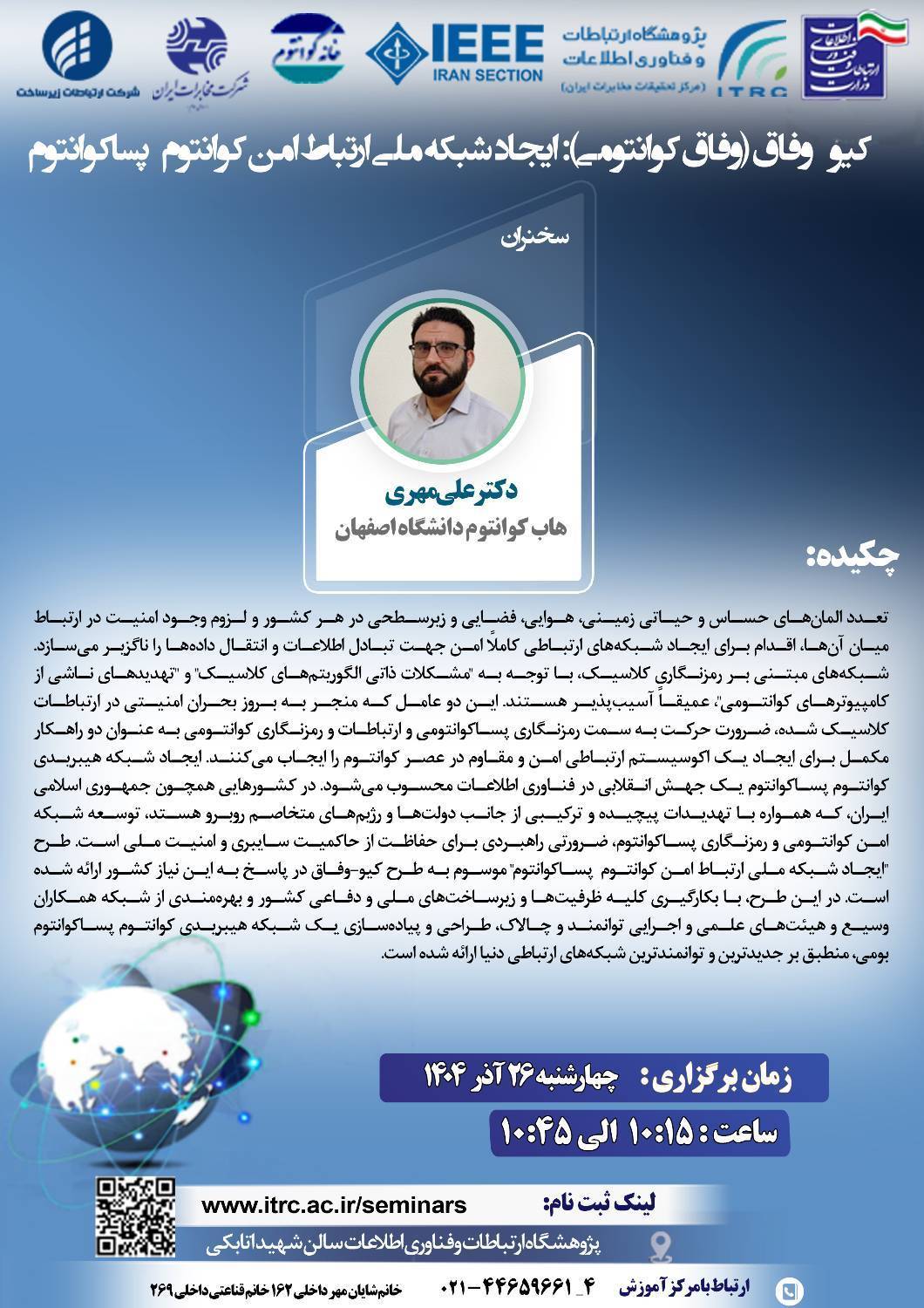 *مکان:* پژوهشگاه ارتباطات و فناوری اطلاعات- طبقه  دوم-  سالن شهید اتابکی
